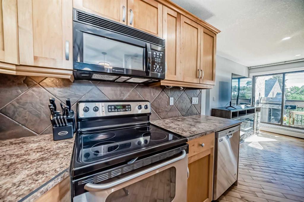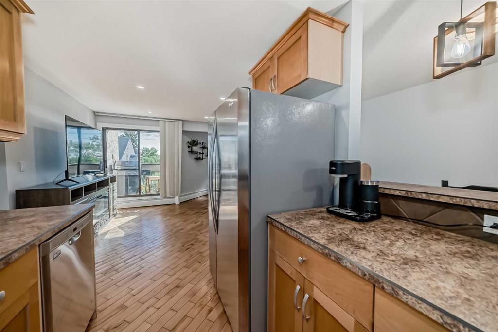 Experience the perfect combination of style, convenience, and value in this beautifully appointed 2-bedroom, 1-bathroom condo located in the highly sought-after inner-city neighbourhood of Renfrew. Just a short stroll from downtown, this home offers a stylish interior and the luxury of secure, heated underground parking. Entering through the west gate, you’ll be greeted by a secure central courtyard that feels more like a vacation retreat than a typical condo. Step into your private entryway, where timeless maple hardwood floors and freshly painted light-coloured walls set the tone. The entire unit shines with modern updates, including new pendant lighting, LED pot lights, and a well-appointed kitchen complete with a breakfast bar. The dining and living area opens up to an east-facing deck, offering sweeping views of the city—a perfect spot for morning coffee or evening relaxation. On the opposite side of the unit, you’ll find two spacious bedrooms and a 4-piece bathroom. Additional conveniences include an in-unit stacked washer and dryer, and an underground assigned parking stall complete with a storage locker for your extra items. This remarkable condo is surrounded by a wealth of dining, shopping, and green spaces, making it the ideal location for urban living. Don’t miss your chance—schedule a showing today before this opportunity slips away!