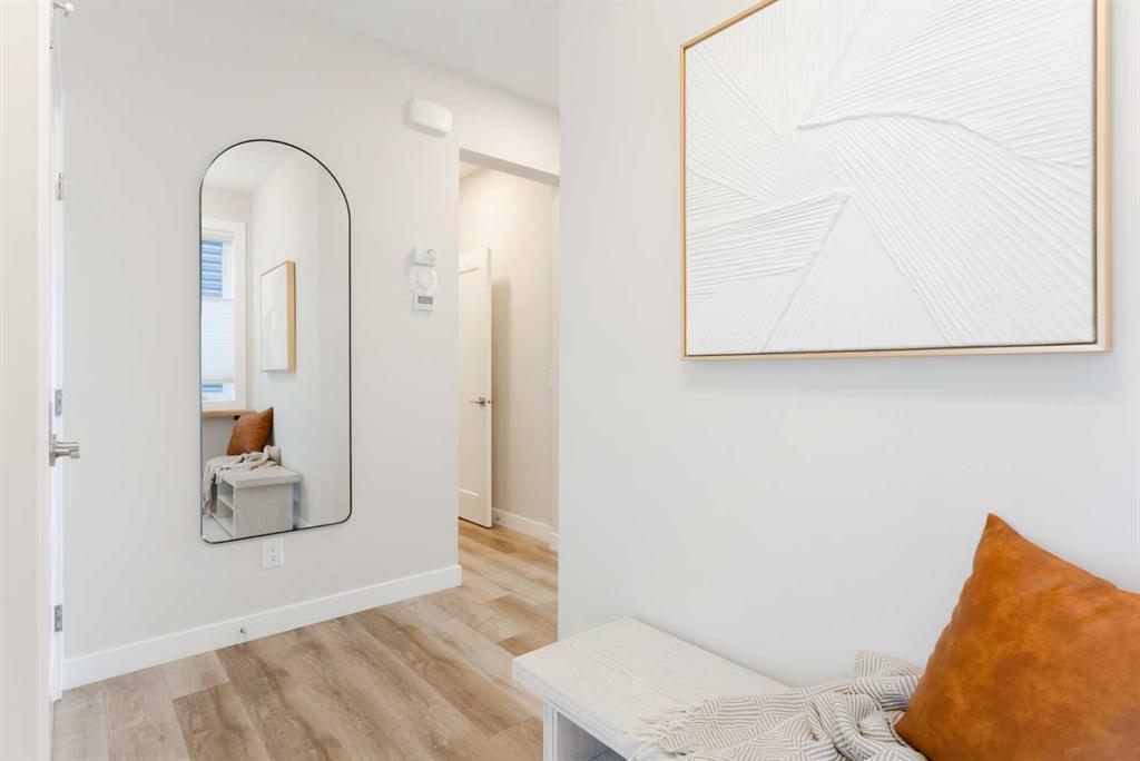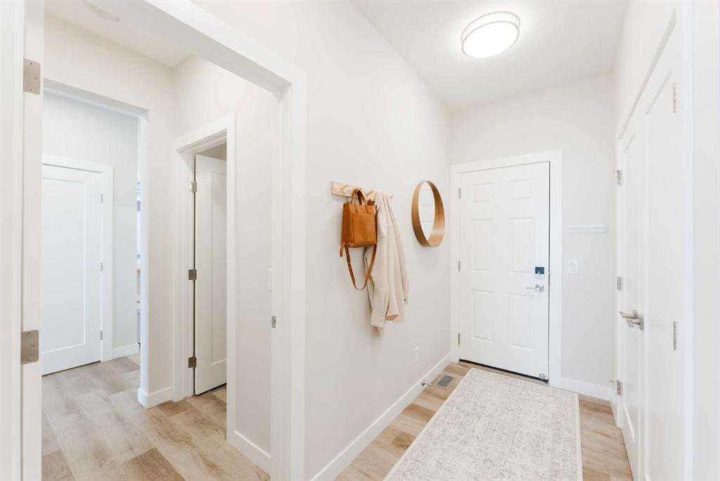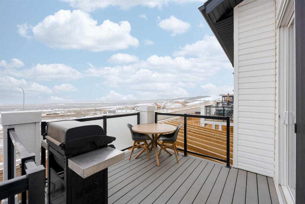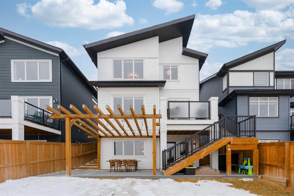 Unobstructed Bow Valley views from every level of this fully finished walkout in Precedence. Come see it for yourself. Inside, the home is clean, bright, and timeless with a light, neutral palette and expansive windows that bring the landscape in. The open-concept main floor features 9’ ceilings, luxury vinyl plank flooring, and a gas fireplace. The kitchen is anchored by a large island with seating, quartz countertops, full-height tile backsplash, and built-in wall oven and microwave — designed for both everyday living and entertaining. Set on an extra wide lot, the backyard is a true standout — composite decking with integrated lighting, a modern pergola, turfed dog run, wraparound stairs, and a dedicated gas line for BBQ — all positioned to take in the valley views. Upstairs offers three bedrooms, upper laundry, and a spacious bonus room. The primary retreat includes a walk-in closet and a spa-inspired ensuite with dual vanities, freestanding tub, walk-in shower, and private water closet. The fully finished walkout basement adds a fourth bedroom, full bathroom, and a flexible gym or workspace with the same bright, open feel as the rest of the home. Additional features include premium top-down/bottom-up cellular blinds (blackout in bedrooms), central A/C, and an insulated double attached garage with a builder-installed EV charger. Located close to Cochrane’s pathway network, Spray Lake Sawmills Centre, Greystone pickleball courts, and everyday amenities — offering a lifestyle that’s hard to replicate.